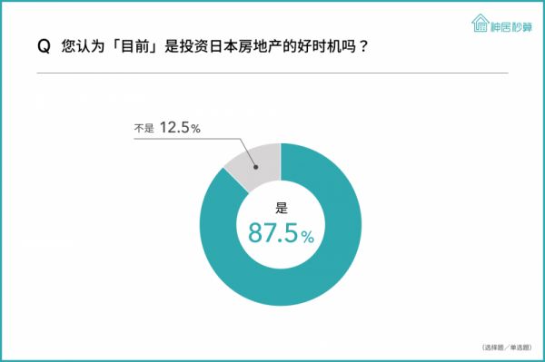 1、87.5%的投资人认为「目前」是投资日本房地产的好时机。