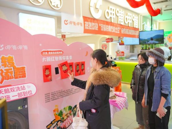 除了花车开道贺小年,小天鹅与呷哺呷哺哈尔滨门店,联名推出了新春添囍双人餐,为大家在寒冷的冬天送去一丝温暖,和尔滨一起热辣开涮。门店现场还设置了红包墙打卡活动,邀请现场消费的朋友们参与到巨鹅红包的抽奖中,众多小伙伴都收获了小天鹅周边好礼,实力诠释将泼天的富贵领回家!