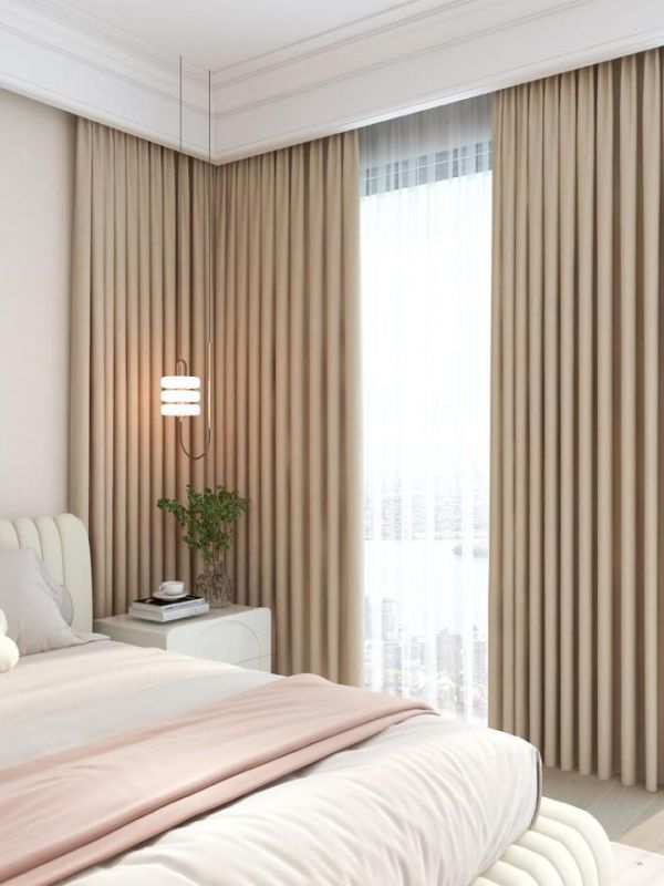 绒布面料窗帘自带雍容华丽与复古典雅的双重属性,可以呈现奢雅相宜的视觉感染力。整齐流畅帘褶与自然顺畅的悬垂感,既保留绒布的贵气之美,又带有简洁大气视觉观感,手感好、遮光性强、垂感十足、富有光泽,适合轻奢、意式、简欧、法式风格。