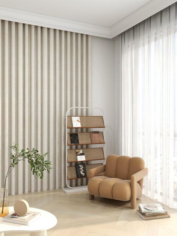 棉麻就像是「天然」的代名词,透气性较强,垂感和遮光都比较好,是目前大众选的较多的一种面料。而且棉麻面料窗帘立体经纬纹路肌理明显,触感细腻柔和,有种简约质朴的美感,简约百搭,适合极简、现代简约、北欧、日式风格,适用在客厅、卧室、书房等家居空间。