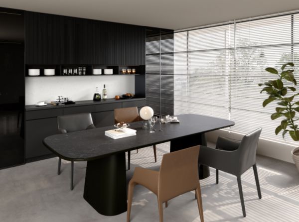 从清晨破晓到日落黄昏,日子自在松弛,这份松弛感,皆因家的温度与包容。在烟火萦绕的餐厅里,亲肤皮纹完美综合极简的清冷感,弧形餐桌让空间更灵动优雅,在自然意蕴与石纹碰撞中,营造轻奢风的格调与意趣。