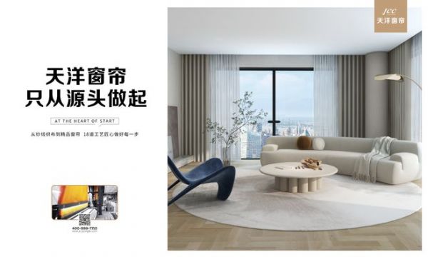 天洋窗帘追求极富设计感的花型,遮光率方面也提供了不同场景选择,让生活更加舒心。天洋窗帘利用100多度高温蒸汽来对窗帘进行定型,褶与褶之间会产生自然柔美的圆弧过渡。敬畏针线交织的传统工艺,在经纬之间,用一颗匠心将织物重塑,用心在艺术与生活之间搭建一座连接的桥梁,这才有了今天的天洋窗帘。
