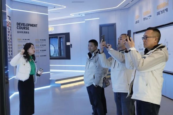 金致尚品门窗总经理范泽银、联合创始人鄢世委、营销中心总经理徐菱、运营总经理曾洪飞、客服部经理王琼等管理团队热情接待,双方围绕可持续经营管理、生产管理、人员管理、产品质量管控等方面进行探讨交流,畅谈行业新发展。