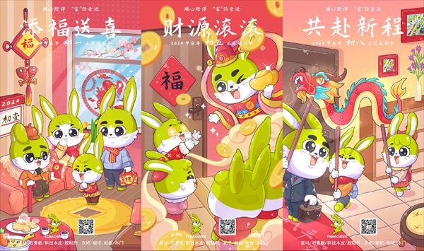 在消费升级的背景下,以用户喜欢的方式与他们对话,才能获得他们的青睐,赢得用户的品牌好感度和忠诚度。兔宝宝通过创意海报陪伴用户欢喜过春节,还原春节期间中国家庭习俗,拉进与用户距离,深化兔宝宝IP形象,让人印象深刻。