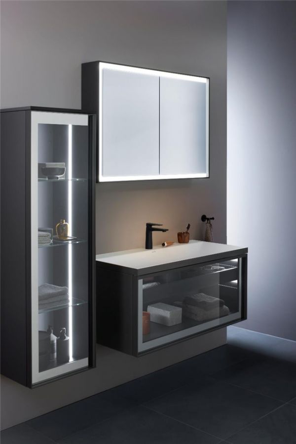 由Christian Werner打造的Vitrium系列浴室柜采用精巧半透明背光玻璃面板,配有抽拉式各层的简洁家具搭配暖色柜内灯光,共同塑就温馨氛围。额外的内置抽屉,让细分的小器具易于收纳,简约而不简单。