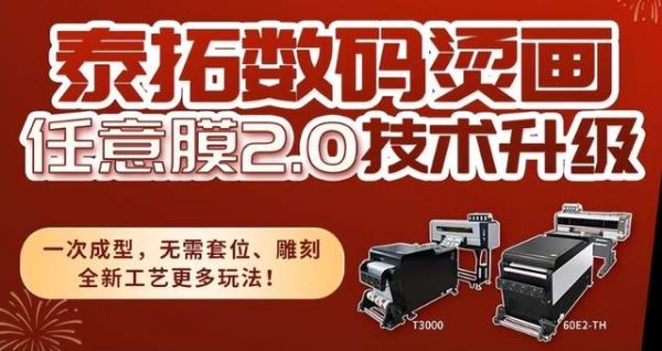 此外,还有泰拓数码重磅推出的烫画任意膜2.0全新工艺:烫金植绒一次成型工艺,无需套位、雕刻等繁琐操作,一次成型即可完成彩色烫画+植绒/烫金增效,本着降本增效的理念,泰拓数码不断进行技术研发,从单一的植绒烫画到烫金烫银组合烫画,均实现了一次成型,省时省力省成本,这项全新的工艺将颠覆传统植绒烫画工艺,将为广大商家实现更大的利好。联系方式:18028300180 王生