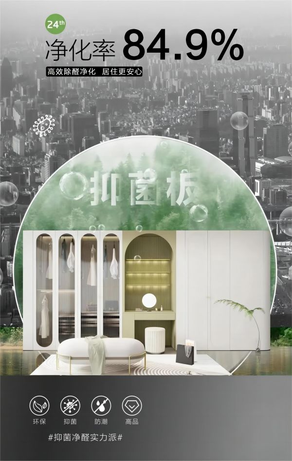 目前推出的抑菌板,为客户提供ENF级环保系统化解决方案,旨在为消费者打造一个健康、安心的家居生活环境。