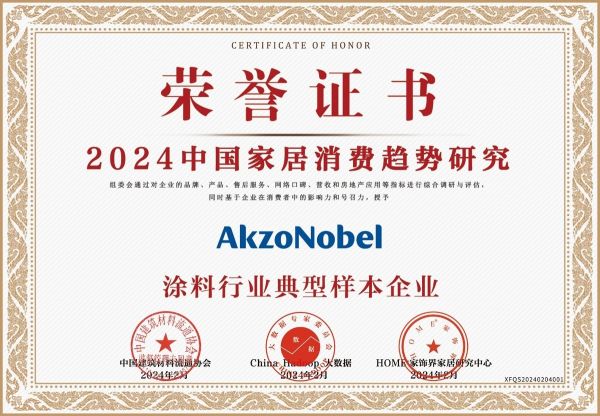 同时,阿克苏诺贝尔公司被2024年中国家居消费趋势研究组委会授予“涂料行业典型样本企业”荣誉,不仅彰显了多乐士涂料在行业内的领先地位,更意味着其在推动涂料行业绿色发展、提升消费者家居生活品质方面所做出的杰出贡献得到了广泛认可。