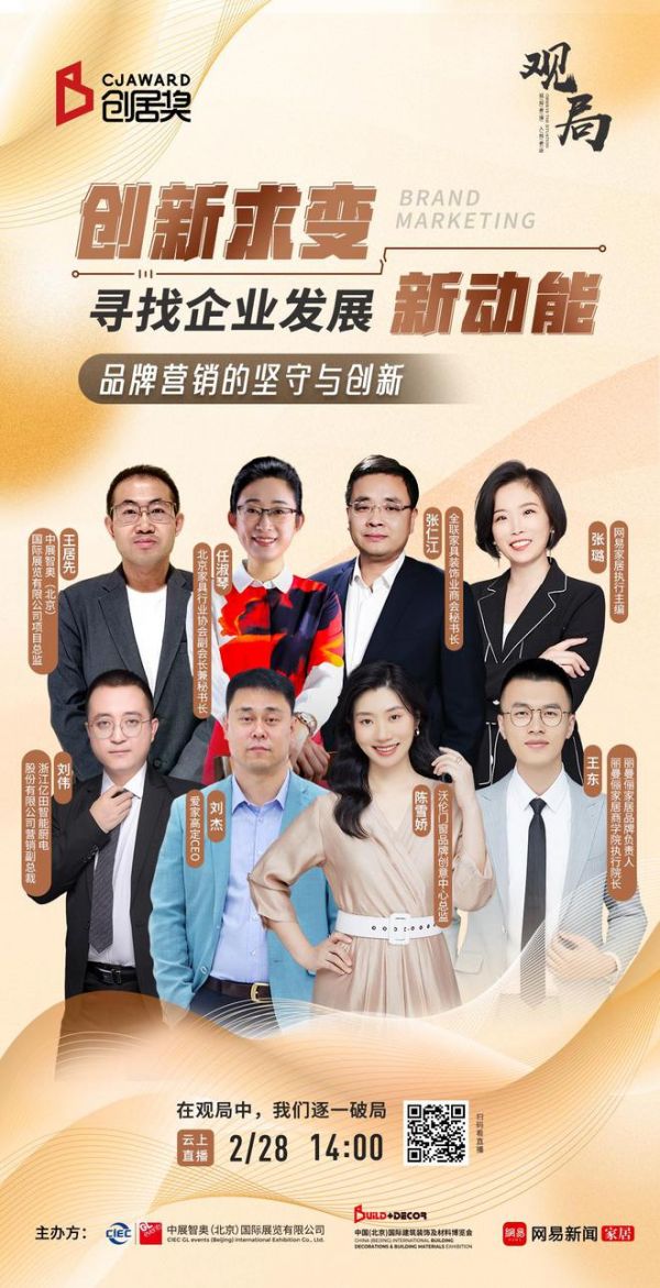 面对这些问题,2月28日,网易家居携手北京建博会发起线上《观局》沙龙,以“创新求变 寻找企业发展新动能”为主题,围绕“品牌营销的坚守与创新”的话题,邀请行业嘉宾分享营销干货,把脉发展未来!