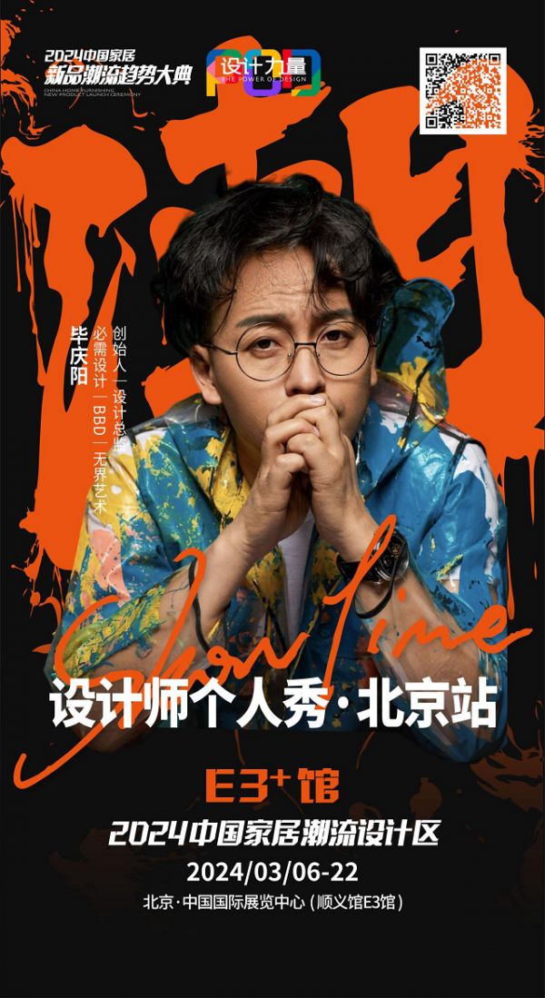 2024年3月6日至22日,2024中国家居新品潮流趋势大典——设计师个人秀·北京站”将依托于第33届中国(北京)国际建筑装饰及材料博览会、第21届中国国际门业展览会-第9届中国国际集成定制家居展览会、中国国际家居软装展-第35届中国(北京)国际墙纸墙布窗帘暨家居软装饰展览会,在北京·中国国际展览中心(顺义馆)盛大启幕。组委会特别邀约12名精锐设计师亲临现场,以“新设计”为核心,巧妙运用色彩、材质和造型等设计元素,完成产品的场景落地。