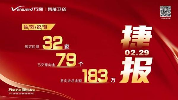 此次“万象更新,和创未来”万和智能卫浴2024春季财富选商大会圆满落幕。据了解,直播当晚意向客户询盘不断,现已经锁定区域代理的有32家,当晚仅收取的合作意向金就有100多万元。万和智能卫浴期待与更多志同道合的经销商携手并进,共享行业机遇,共同谱写合作共赢的新篇章。