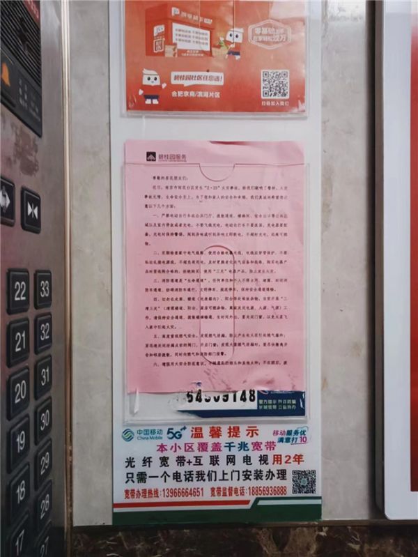 2月28日,碧桂园服务翰林园项目张贴“致业主的一封信”,提示业主做好日常生活的安全防范工作,同时物业工作人员不间断地推送朋友圈和业主群,提示业主电瓶车需停放在安全区域,禁止各类存在安全隐患的行为。