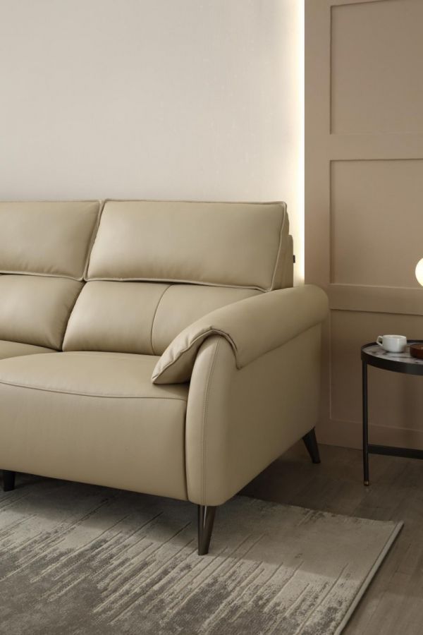 「小象耳」以象牙米为配色灵感,呈现出柔和纯净的视觉美感,时尚而温馨。设计上,用简洁线条勾勒饱满造型,尺寸适中,完美适配中小户型,轻松提升精致感。材质上,「小象耳」采用进口头层黄牛皮面料,经过表面轻压摔工艺处理,触感亲肤细腻,柔韧耐磨。