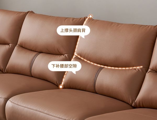 沙发靠背按照人体工程学划分区域,双段式分区给予身体舒适支撑,倚靠时更加贴合腰背曲线,久靠也不累。靠包内部采用微孔式高弹棉填充,上万个微孔立体式结构交错散热,透气蓬松,靠感宛若云朵般柔软。