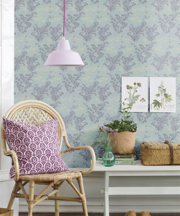 艾草青与墙布上的自然图案相得益彰