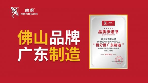 碧虎防滑大理石瓷砖,自品牌创立以来,始终坚持【100%佛山品牌,100%广东制造】。这不是一句口号,是对千家万户的郑重承诺!