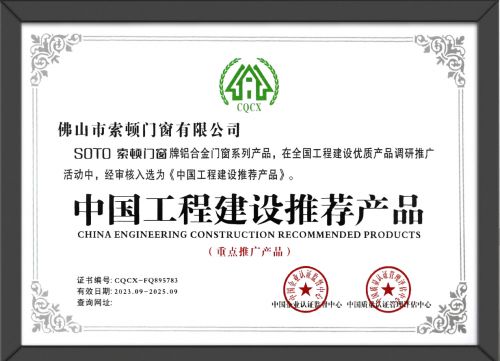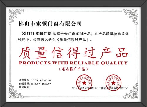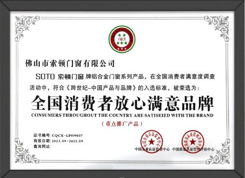 品牌之路,载誉前行!近日,经有关部门评选,广东系统门窗品牌索顿门窗一举荣获“质量信得过产品”、“中国工程建设推荐产品”、“全国消费者放心满意品牌”三项荣誉!再度见证市场对索顿门窗的充分肯定。