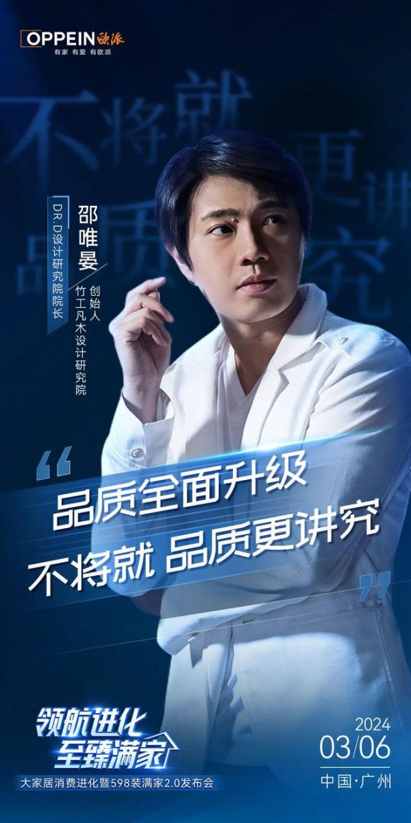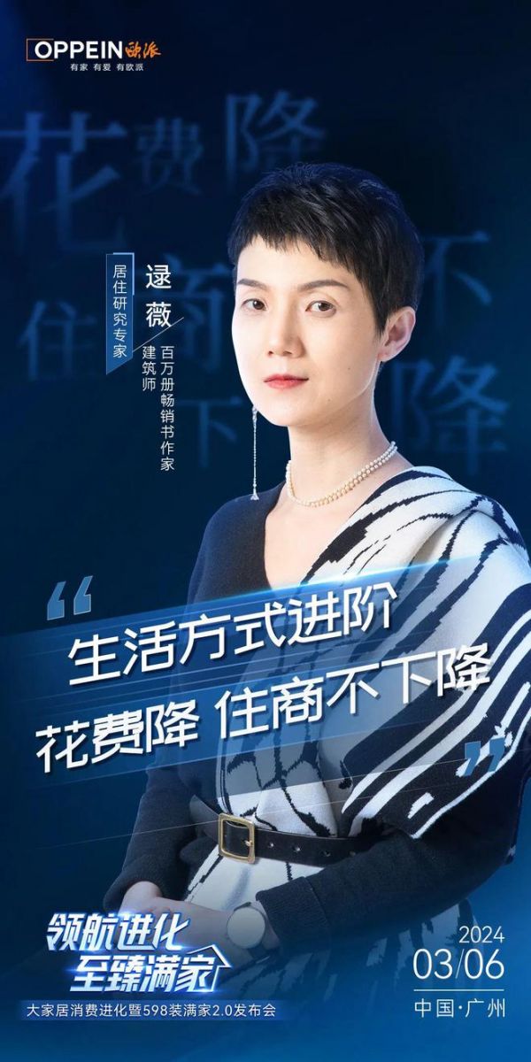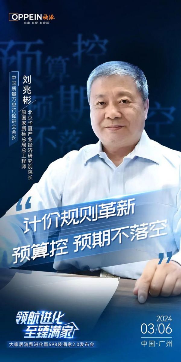 本次,3月6日,“领航进化 至臻满家--大家居消费进化暨598装满家2.0发布会”,欧派特别邀请原国家质检总局总工程师/中国质量万里行促进会会长刘兆彬、居住研究专家/《小家,越住越大》系列作者逯薇、Dr.D设计研究院院长邵唯晏等嘉宾莅临,他们将从各自的专业领域出发带来精彩分享。