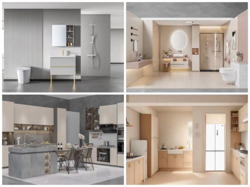 针对消费者对全智能卫浴空间、超能装小家厨房等场景下的焕新需求,京东家电家居巅峰大牌还根据不同厨卫面积、装修风格、功能偏好,推出多款由美的、九牧搭配的一键购焕新套组,并以场景图的方式向消费者展示搭配效果。