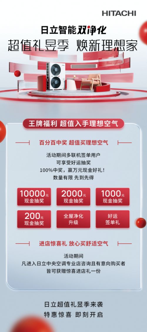 在315来临之际,日立重磅推出“超值礼昱季 焕新理想家”钜惠活动。优质产品、劲爆优惠、贴心服务应有尽有,真真切切给消费者一个放心选购的保障。2月24日—3月17日,正准备家装焕新的朋友们,遇到日立这场钜惠福利,赶紧进店参与活动吧。王炸新品、十倍膨胀金、10000元现金补贴、免费礼品直送...超多福利等你来薅!
