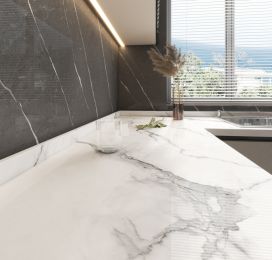 用简单而克制的方式描绘真实的生活场景,亮面奢石门板在阳光的照射之下,整个厨房空间看起来更加明亮宽敞,整齐划一的橱柜美观整洁,也注重实用性,让台面空间得到充分释放,家电隐匿式设计,极大提升空间可利用率,不仅清爽整洁美观,还保留了厨房的整体性,活动更加自由。
