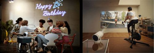 The Freestyle三星随享智能投影仪也是本次发布会上的亮点之一。The Freestyle三星随享拥有1080P全高清分辨率,同时还配备自动梯形校正、自动调平和自动对焦功能,能够轻松投出16:9的清晰方正画面。底部的180°旋转支架支持多角度随享投射,且投影画面较高可达到100英寸。产品内置5W的全方位扬声器,提供清晰、逼真的高品质环绕音效,实现影院级音响体验。The Freestyle三星随享机身重量仅有0.8千克,单手可握持,搭配便携式移动电源底座可随用户外出旅游,真正做到了“如影随行”。产品小巧便携、随享旋转的特性也将带给用户更多乐趣和启发,在解锁“Freestyle的100种玩法”过程中体验更多精彩,为“家”增添更多幸福感。