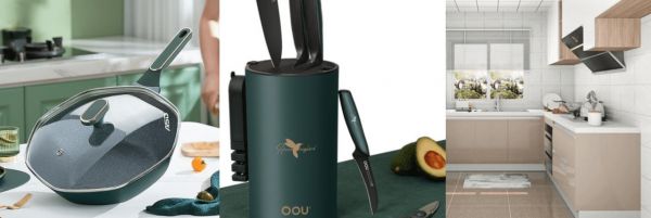 绿色是春天的代表色,绿色系的厨具更是引领春季家装节高颜值厨具的潮流。其中,人气爆品墨绿色九阳L‘amore系列不粘炒锅煎锅汤锅套装将意式设计融入中式烹饪,轻松解锁厨房高级感。牛油果绿爱仕达网红八角炒锅、淡绿色VELOSAN荷叶不粘炒锅、翡翠绿色的蜂鸟7件套等好物“森系”范儿十足,拉满春日厨房的氛围感,且自带滤镜buff,随手拍出大片既视感。