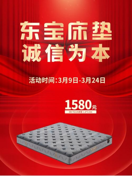 春风送暖,万象更新。为配合大家的家居焕新大计,3月9日-3月24日,东宝床垫举行开门红活动,推出两款高性价比的产品,回馈广大消费者的支持与认可。