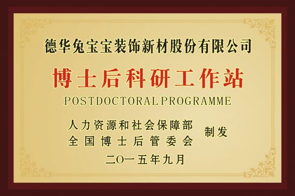 人才是第一资源,创新是第一动力。兔宝宝自成立以来就十分重视人才工作,目前在职人员大专以上学历占比超过50%,先后引进数十名高学历高职称人员,组建了高水平的研发队伍和高层次的科研平台,博士后科研工作站就是科研平台中的优秀代表。