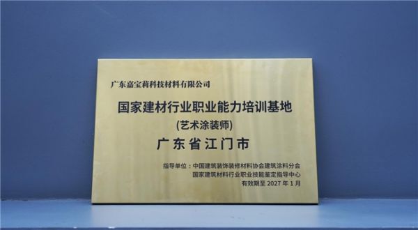 嘉宝莉艺术涂料 喜获国家建材行业职业能力培训基地授牌