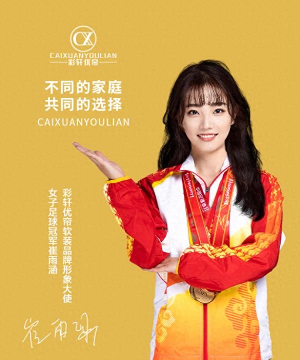 此次签约女足冠军崔雨涵为彩轩优帘品牌形象代言人,是彩轩优帘品牌不断拓宽品牌格局,深化跨界营销创新举措。