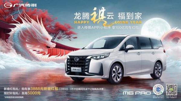 现在适逢新春,广汽传祺特地准备了百亿红包新春红包礼,即日起至3月31日下单M6 PRO即享3888元新春红包,还有至高5000元的限时补贴礼,助力新农人开启新一年的致富路!