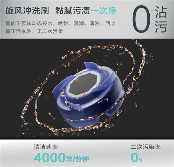 同时,闪电新品米博无布洗地机Q8智能开放清洁腔并抬升地刷空间,通过高效无阻挡风道形成15000Pa大吸力,实现强力干吸。此外还搭载旋风冲洗刷功能,轻松洗净黏腻污渍,通过智能正反转动态控水、喷射、浸润、清洗、回收,真正实现活水洗,无二次污染。值得一提的是,旋风冲洗刷清洁速率更是高达4000次/分钟。