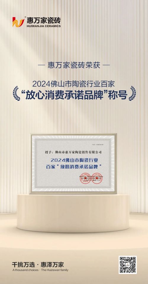 惠万家瓷砖获得2024佛山市陶瓷行业百家“放心消费承诺品牌”荣誉称号