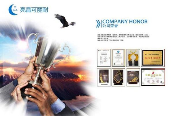 实力见证 勇攀高峰随着企业实力的提升,亮晶可丽耐获得包括“金象奖、国际管理体系专业认证、国家安全中心认证、省级安全中心特批优秀甲类化工生产企业、卫浴优秀合作商、优质供应链企业”等多项认证证书,董事长王钧获得“行业先锋人物”荣誉。多年以来,亮晶组建了以中科院专家为核心,由20多名技术精英组成的研发团队,并搭建起高标准专业实验室。团队始终坚守初心,孜孜不倦攻关技术难题,持续为卫浴行业的产品迭代升级提供强大助力。