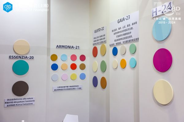 展会期间,2024威罗意大利进口艺术涂料“情感色彩”发布会如约而至,意大利先锋派艺术家Fancesco为2024年度情感色彩——“H--24”进行全球首发揭幕。今年的情感色彩以数字为基础,联系“全天24小时”为引申,结合中国“二十四”节气,界定两个时间轴,进而覆盖“人”这一情感媒介全程,发散到“鸡鸣狗吠、晨钟暮鼓”,寒来暑往、春云秋雨,汲取“一天”、“一年”,最具代表性的色彩摘取“一叶之微笑,一色之韵味、一时之感触”融合两个单词“hour”、“home“就是威罗2024情感色彩“H-24”诠释和触达的“色彩真谛”。