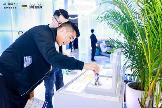 3月17日深圳家具展/智博会现场,舒达ICF AI Pro智能自适应套床吸引了众多中外来宾的目光