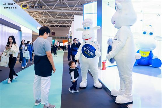 3月18日深圳家具展/智博会现场,观众与舒达羊亲密互动