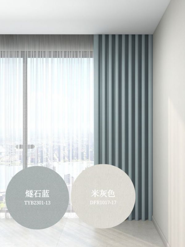 ① 窗帘颜色:蓝色 | 墙布颜色:米灰
