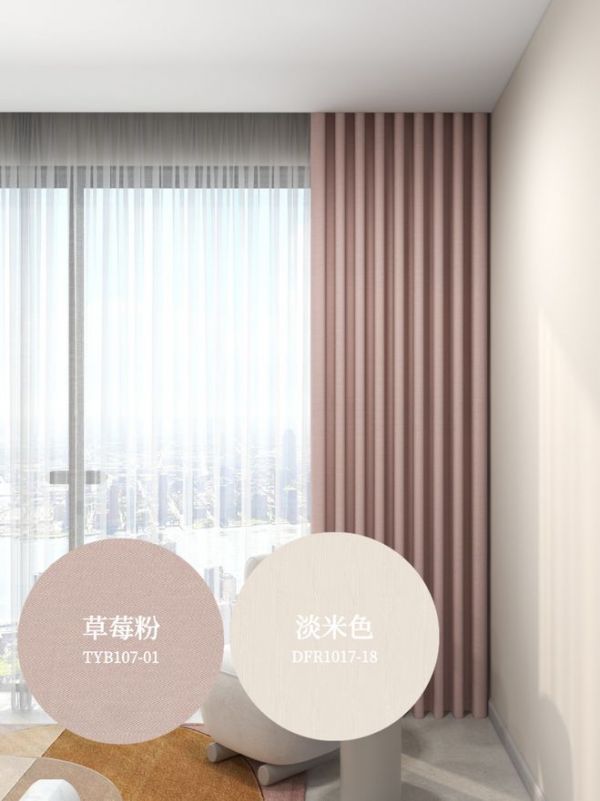 ② 窗帘颜色:粉色 | 墙布颜色:淡米