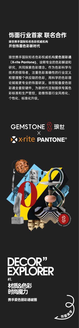 在本届展会上,GEMSTONE琅世将重磅宣布与爱色丽彩通(X-rite Pantone)的战略合作与新品发布。作为色彩科学与技术领域的领导者,爱色丽彩通将携手琅世,重新诠释专业的色彩解读与研究,用科学的色彩理论赋能更专业的饰面研发与生产。