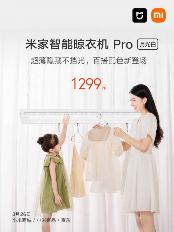 3月26日,米家智能晾衣机Pro月光白如约而至,在小米商城、小米有品、京东正式开启预售,首发定金100元抵200元,到手价仅1199元,还送米家精致小夜灯,将福利进行到底。