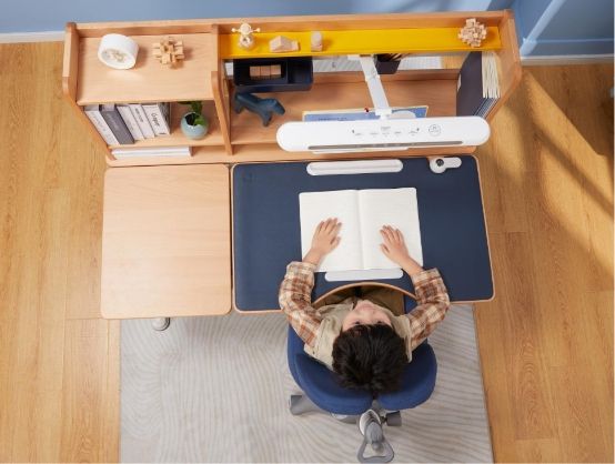 2、专业的学习桌椅一定要具备桌椅升降、桌面可倾斜、自有阅读架、桌面角度显示器、强收纳等功能,质量好的学习桌可以使用十多年,一定要多对比功能性。