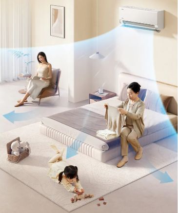 其中,“智控温”不仅可实现先快速降温,等室温达到舒适温度后,再自动回调温度,避免持续低温冷风,做到智能控温,避免老人、小孩,或者怕冷人士因长时间低温引起的着凉。“防直吹”模式升级弧形大导防直吹技术,一键使出风口导风板抬升至水平状态,让冷风“拐弯”不直吹,无需担心空调冷风久吹引发的头疼问题,呵护敏感人群。