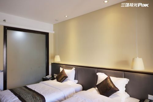 为打造舒适柔和的休憩空间,酒店采用了三雄极光深藏防眩的专业灯具,同时巧妙控制灯具使用位置避免眩光。在打造优质视觉舒适感的同时,真实还原酒店空间每一片区域该有的空间颜值和光环境氛围。