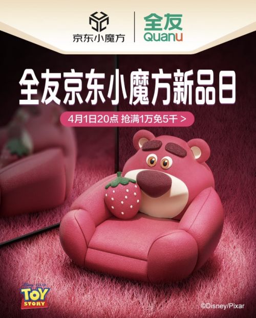 4月1日20点,京东携手全友家居开启小魔方新品日。当天,京东线上首发全友家居草莓熊系列合作款新品——甜莓单椅、甜莓朵朵沙发床、甜莓云朵沙发,还带来床、床垫、茶几、餐桌等超值新品爆品,并奉上全店商品抢满1万元免5000元、1000份联名盲盒限定礼免费抢、60套新品免费试用等福利,让消费者轻松焕新春日治愈家。