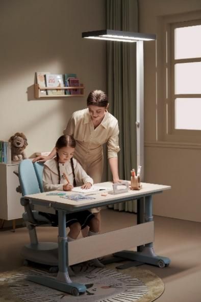 在围绕护眼灯的场景体验深入分析后,双方根据“室内学习无法接触到太阳光”和“传统台灯无法为桌面提供全面照度、会有阴影”两个隐藏痛点,研发了无限接近自然光、实现800lux以上照度、可达无影状态、陪伴孩子全周期成长的“天际光”立式台灯。