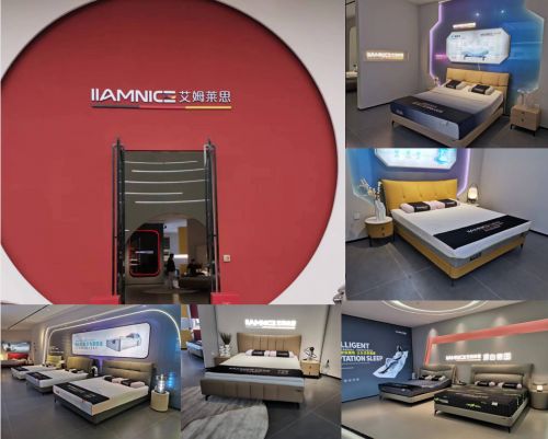 IIAMNICE艾姆莱思2023年登陆中国,在东莞厚街家具大道新建3000+平方国际家居馆,产品涉及:原装进口床垫、Ai智能床、记忆棉0压床垫无胶水手工床垫,真皮软床,功能沙发、餐桌椅,智能家居定制软装等品类,形成一站式服务的综合家居国际馆。