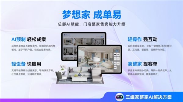 三维家梦想家是一款让业务人员也能使用的3D方案签单神器,可以很好地解决定制客户在量房、出效果图之后没有签单的痛点。