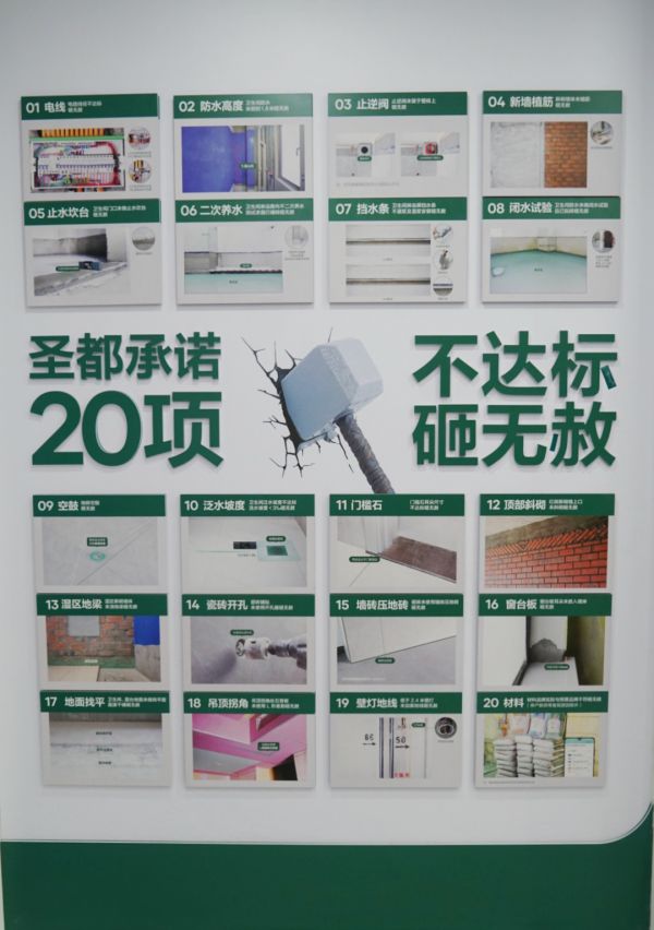 刘名馨将其归功于公司对于集团服务理念的严格贯彻。“对于所有签约圣都的业主,我们都会讲‘客户十怕·圣都十诺’ 承诺细则写入装修合同,并以‘无恶意增项’‘二十项工程质量不达标,砸无赦’等承诺确保圣都整装服务。”